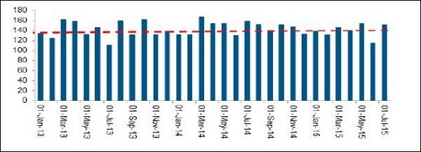 图2.3.24月份以来新疆地区平均利用小时数维持在125小时以上