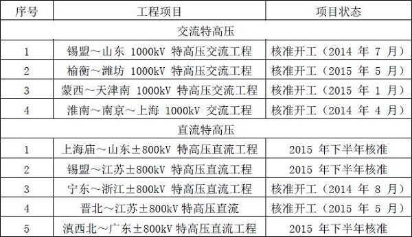 表2.3.2“四交五直”特高压工程,2015年下半年有望全部核准开工