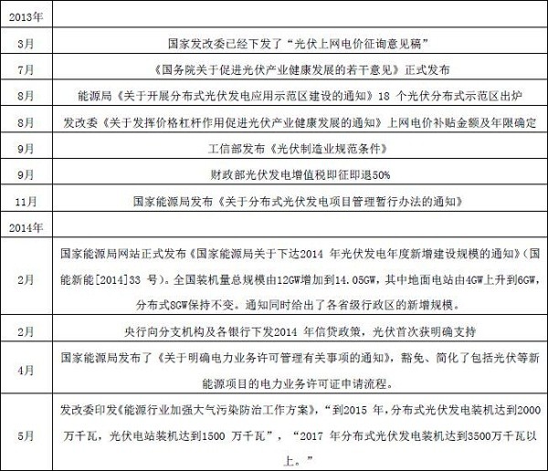 表2.4.12013年以来对国家出台的重要光伏政策一览表