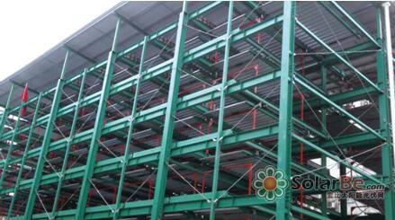 该项目由两栋前后7层的联栋立体车库组成,占地面积600余平米,可同时停放140余辆乘用车,缓解了当地停车难的问题。同时该项目充分利用车库屋顶装设20kW光伏太阳能电池板,除了满足整个系统的电力供应外,多余的电能还可以并入公网实现创收。