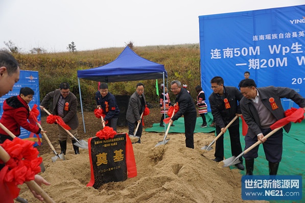 12月23日,广东英利连南50MWp生态农业光伏发电项目一期20MWp项目在连南瑶族自治县三排镇连水村正式开工建,项目总投资约1.5亿元,占地约556亩,建设周期为6个月。项目建成后,年均发电量为2000万KWh,每年可以节约标准煤6630吨、减排二氧化碳18167吨、减排二氧化硫123吨、减排氮氧化物60.6吨、减排碳粉尘40吨。