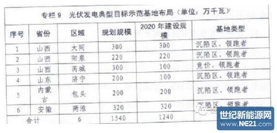 1、结合采煤沉陷区土地、水面等不同形式综合治理,在建设条件较稳定和明确、电网接入和消纳条件较好的大同等地区,建设先进技术示范基地;