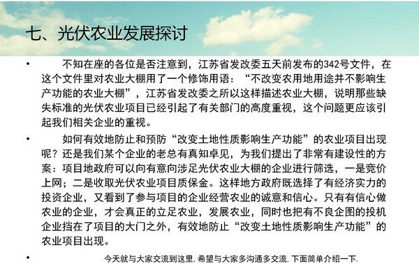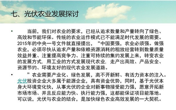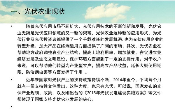光伏农业在现今越来越受到国家和业内人士的关注。将光伏和农业应用结合在一起,开拓了新的光伏应用市场的同时又使得农业技术、扶贫政策得到了扩充。那么光伏农业落到实处都有那些开技巧?又有些什么政策建议呢?让我们看专家怎么说...