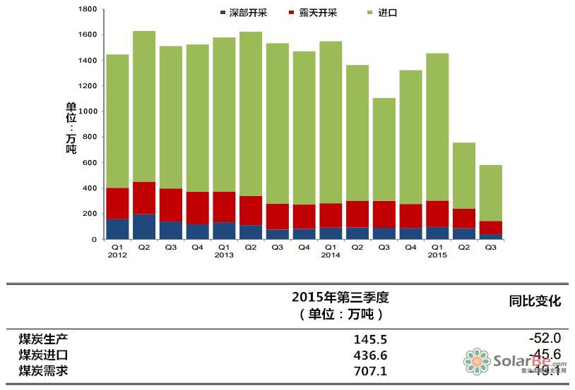 英国2015年第三季度当前能源数据显示,煤炭产量为150万吨油当量,同比降低52%,创历史新低。这主要是由于火力发电的需求减少以及一些可供开采的煤矿资源殆尽。