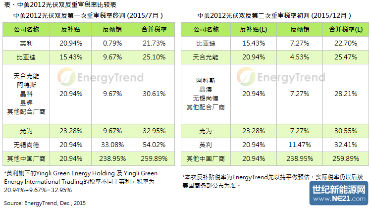 EnergyTrend分析师林嫣容指出,若仅观察反倾销税率的下调幅度,厂商普遍下调2.4%,降幅不大。然目前直接从中国大陆本土出货美国最多的当属天合光能,也是本次重审的最大赢家,仅反倾销幅度就下降了5.14%。若如本次预估有5%左右的税率降幅,天合使用本土产能供货仍有9%左右的毛利,且其泰国新建置的产能在顺利量产后也能持续供货美国。其余中国厂商的税率下调优势虽不明显,但近期一线大厂在第三地的产能布局已臻成熟,税率影响性将逐步缩小,故本次税率重审整体而言对中国厂商影响不大。