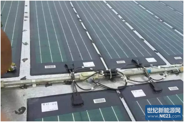 中石化南溪加油站安装了汉能薄膜太阳能发电组件当今的工业厂房、物流仓储、机场、车站、展馆、体育场馆等,大多采用负载较低的轻钢屋顶,传统的光伏组件往往因质量较大而无法在这些领域得到推广。汉能柔性薄膜发电组件则可以很好地解决这一问题,它具有轻、柔、薄、可弯曲等优势,每平方米的重量不超过4公斤,对屋顶增加的恒荷载极小,可轻松地为这些用户提供太阳能发电解决方案。