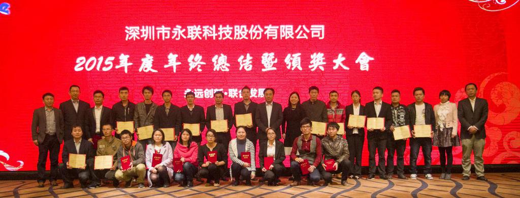 2015年是深圳市永联科技股份有限公司大发展的一年,公司顺利完成了股份制改造并成功在新三板挂牌,自主研发的兆瓦级光伏逆变器通过权威第三方机构检测认证成为行业“领跑者”,各项业务不断实现新的突破。本次年会以“感恩,挑战,超越”为主题,会场充满喜庆而温馨的气氛。