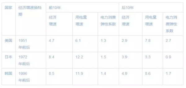 (典型发达国家在经济增速换档前后10年的电力弹性系数)
