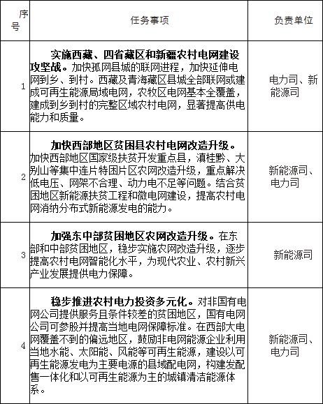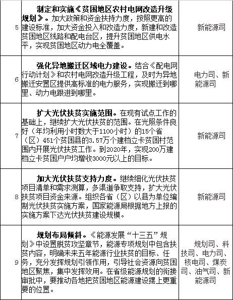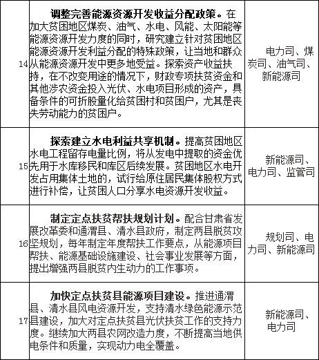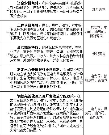 《国家能源局关于加快贫困地区能源开发建设推进脱贫攻坚的实施意见》任务分工