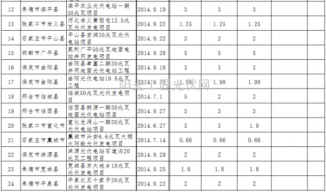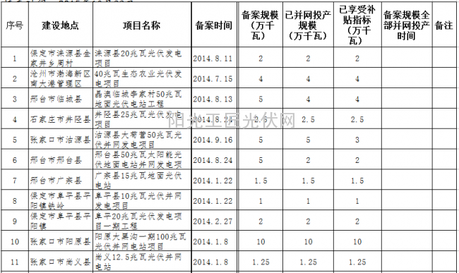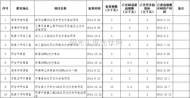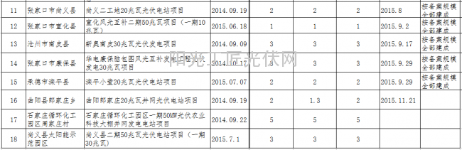 河北省2015年光伏发电计划安排中新增并网投产项目