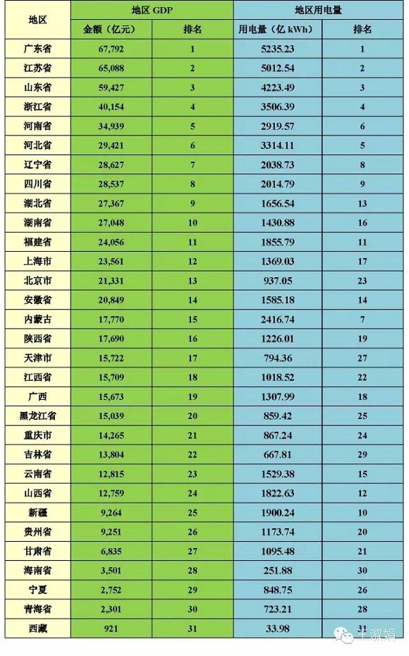 因此,奉上2014年各省的GDP和全社会用电量数据(2015年统计数据还没出来)。