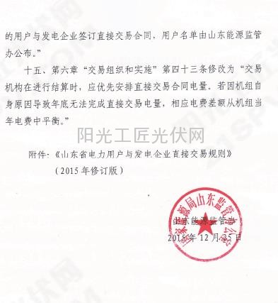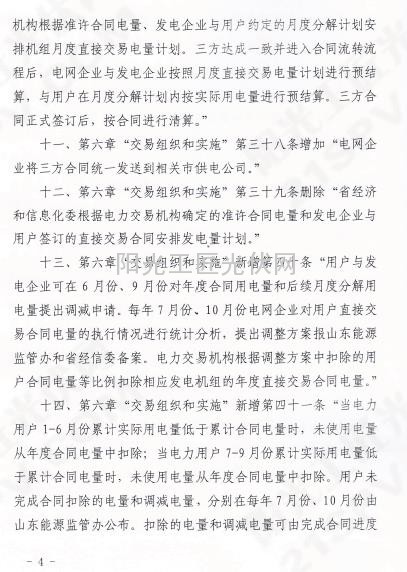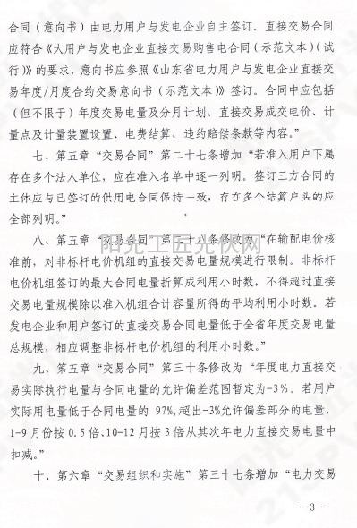 关于修订《山东省电力用户与发电企业直接交易规则》的通知