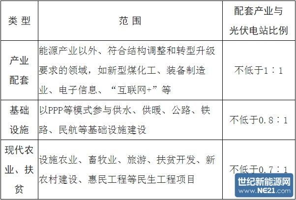 (一)拥有先进光伏技术产品、具备丰富光伏电站开发经验、资产规模达到50亿元的企业。有能力根据光伏园区规划,一次建设园区电网、道路、供水等基础设施。配套产业项目(除能源及产能过剩项目)投资须达到30亿元以上。具体配套产业如下:
