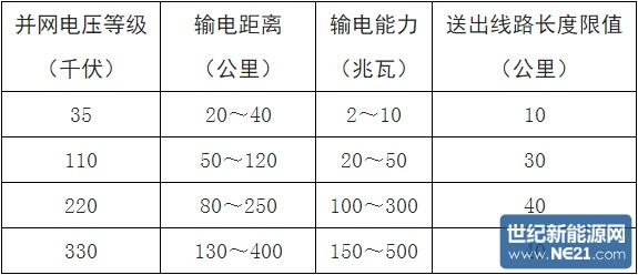 光伏电站并网线路设计、施工需与所在光伏发电基地送电走廊规划相衔接。电力部门在审查光伏电站接入系统设计时,应合理控制送出线路的长度和输电走廊。各并网电压等级的光伏电站送出线路长度原则上不应超过规定的限值。