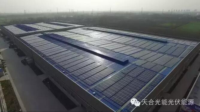 一期27MW电站项目由三个项目组成,分别位于宿迁国开区长润电器、美百加、黄河电子三家公司厂房屋顶上,采用天合主流产品Honey组件共计约11万块,安装在彩钢瓦屋顶上。项目采取全额上网模式,之后20年的平均年发电量为3000万千瓦时。与相同发电量的燃煤电厂相比,按标煤煤耗为0.4g/kWh计算,每年可节约标准煤11641吨,每年分别可减少温室效应气体二氧化碳排放约29000吨,大气污染物二氧化硫排放约64吨,氮氧化物排放约154吨,烟尘排放约3928吨。另外,该项目二期14MW电站也即将开工。
