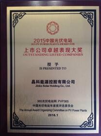 在近日举办的2015中国光伏电站年会上,晶科能源凭借出色的业绩成长、资本市场表现,摘得2015年度中国光伏电站上市公司卓越表现大奖。
