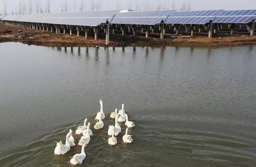 所谓“渔光互补”发电项目,就是将光伏组件布置于水面上方,上层用于太阳能发电、下层用于水产养殖的新型光伏系统工程。通过光伏组件实现清洁能源发电,最终并入国家电网。“渔光互补”不但不额外占用耕地,还极大地提高水面资源利用效率、单位面积土地的经济价值和土地的产出率,能对土地综合利用与新能源产业结合发展起到良好的示范作用。