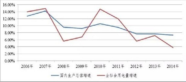 图表7.2010~2014年我国生产总值和全社会用电量的情况(单位:%)