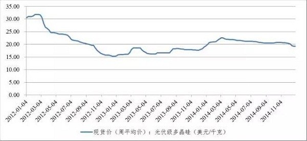 图表14.2012~2014年多晶硅周平均价格走势(单位:美元/千克)