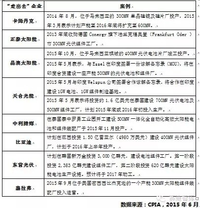 据工业和信息化部数据统计,2015年1-9月,我国光伏相关行业投资807.9亿元,同比增长35.8%,又据Energy Trend统计,2015年多家中国企业已宣布扩产计划,将新增4.2GW组件产能,其中国内组件产能将新增3.2GW。多家企业实施“走出去”战略,我国已建成投产海外电池与组件产能分别达到1.7GW与2.3GW,在建及扩建产能分别达到2.6GW与4GW。行业兼并重组加速,以市场为主导的资源整合不断深入。顺风国际收购多晶硅企业万年硅业及美国电池组件企业Suniva,进一步优化产业链布局;通威集团投资8.5亿新台币入股台湾昱晶能源,增强电池片规模经济效应;西安隆基、天合光能等企业与英利合作,通过委托加工等方式,实现产能利用率最大化等。