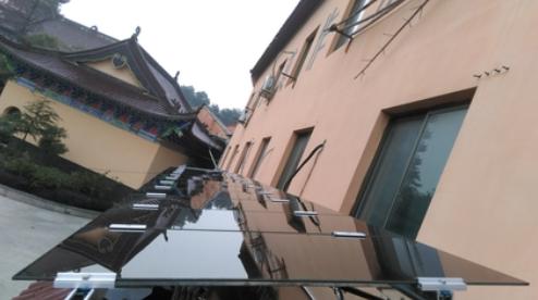 近年来“山色空蒙雨亦奇”的杭州,时常笼罩在雾霾之下。为了倡导更多的人使用清洁能源,更好地改善人类的生活与居住环境,为子孙后代留住绿水青山,道明大师决定安装汉能薄膜太阳能发电系统。通过梧桐寺的社会影响力去倡导更多人能够转变能源消费的想法和使用习惯,为保护环境做出更多的贡献。