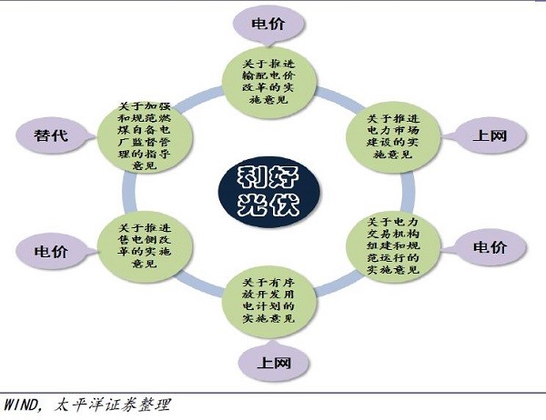 我们认为,在政策层面,国家积极推动光伏产业的发展壮大,有的放矢。其主要的监管政策基调是降低补贴、降低成本、稳定规模、整合行业,以推动能源转型。下游巨大的装机市场空间,将会推动产业链中上游的进一步发展。