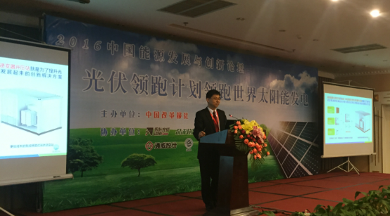 在大会设置的“领跑计划领跑世界太阳能发电”主题演讲环节,上能电气副总裁李建飞发表了“高效集散式逆变方案在光伏电站中的应用及展望”讲话,李建飞表示,党的十八届五中全会描绘了未来五年中国经济社会发展的宏伟蓝图,确立了“创新、协调、绿色、开放、共享”的发展理念,强调必须把“创新”摆在国家发展全局的核心位置,光伏企业应该顺应潮流,坚持科技创新,技术为本,做一流的产品。