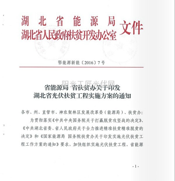 湖北省能源局:《湖北省光伏扶贫工程实施方案》