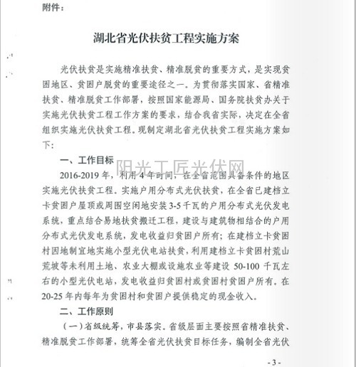 光伏扶贫工程实施方案》(一下简称“《方案》”)。根据方案,湖北省计划在2016—2019年,利用4年时间,在全省具备条件的地区实施