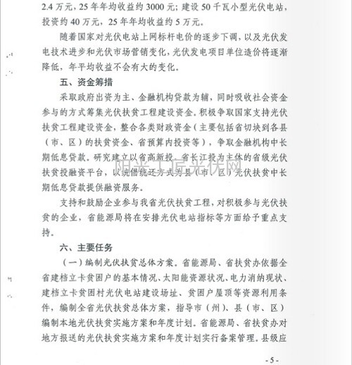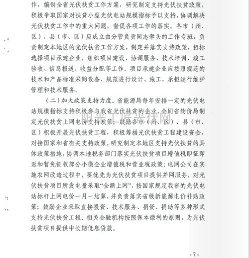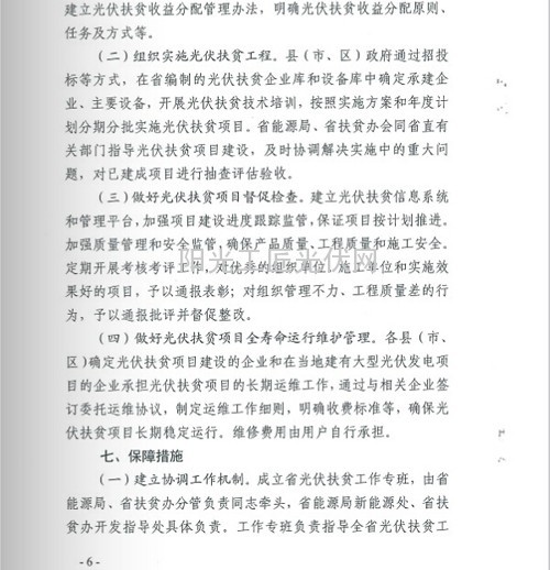 光伏扶贫工程。在全省已经建档立卡贫困户屋顶或周围空闲地安装3—5千瓦的户用