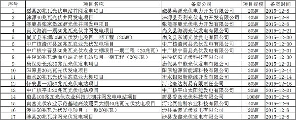 附件:2015年12月河北光伏项目备案情况