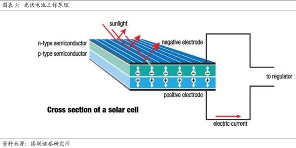 严格意义上说,地球上的能源都来自于太阳能,生物质能、水能和风能本质上都是太阳能通过二次或多次转换而来。唯有光伏转换,是直接通过太阳的辐射将太阳能转换为电能。其发电原理为:在阳光的照射下,半导体硅片内产生电子--空穴对;在P型硅和N型硅形成的PN结的内建电场作用下,空穴--电子对产生分离;带正电的空穴向P型硅区域移动,带负电的电子向N型硅区域移动,从而形成电势差;在外加负载的情况下,电流便能接通从而持续供电。