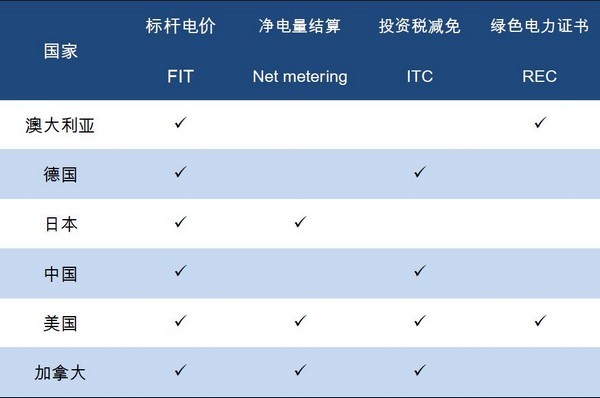 标杆电价FIT、净电量结算Netmetering、投资税减免ITC、绿色电力证书REC等政策,则给与了新能源的投资开发商资金回报方面的保障。下表列示了世界主要国家投资新能源的政策优惠。