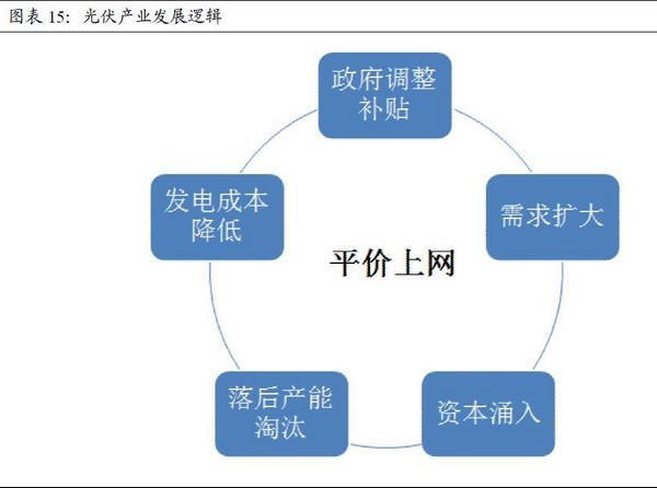 我们认为,光伏产业的发展动力可以归结为科学技术的进步,政策力量的推动与逐利资本的进入三个来源。