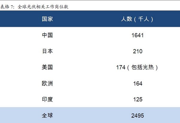 光伏在招商引资的同时,还为全球制造了大量的工作岗位。根据国际可再生能源机构IRENA的统计,全球与光伏直接或间接相关的工作约250万份,其中中国约占三分之二,为光伏制造业第一大国。