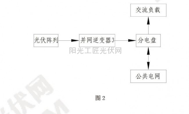 [0019] 图 2 是本发明实施例一所述的浮动式水上太阳能光伏发电系统并网系统原理示 意图;