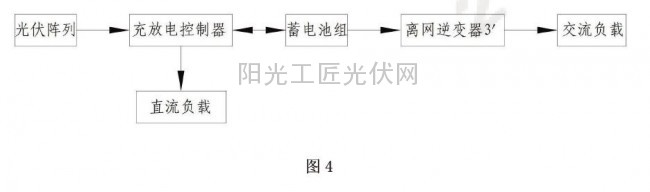 [0021] 图 4 是本发明实施例二所述的着床固定式水上太阳能光伏发电系统离网系统原 理示意图。