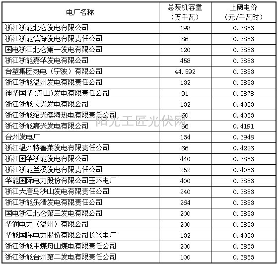 1.浙江省电网统调燃煤电厂上网电价表(不含环保电价)