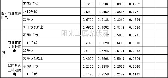 注:1.上表所列价格,除农业生产中的贫困县农业排灌用电外,均含国家重大水利工程建设基金1.436分钱;除农业生产用电以外,均含城市公用事业附加费0.5分钱、大中型水库移民后期扶持资金0.83分钱和地方水库移民后期扶持资金0.05分钱;除农业生产用电、中小化肥用电外,均含农网还贷资金2分钱;