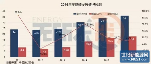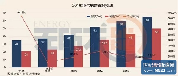 多家机构预测2016年全球光伏市场将继续保持高速增长,其中彭博新能源财经预测2016年全球光伏将新增装机64-68GW。