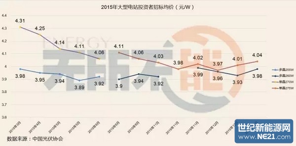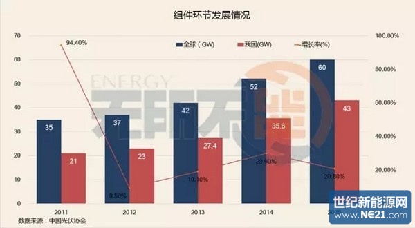 2015年中国光伏新增装机15GW,连续三年新增装机超过1000万千瓦。