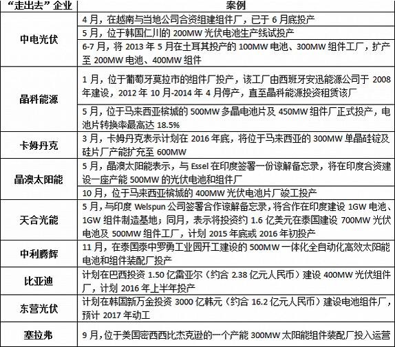 2015年中国光伏企业“走出去”。数据来源:CIPA