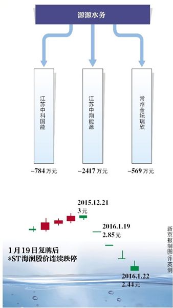 2015年,这三家公司的净利润分别为-784万元、-2417万元、-569万元。这意味着,源源水务短期内对*ST海润的业绩提振作用有限。