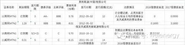 天威英利通过关联方拆迁补资金偿还“10英利MTN1”本息总计7亿元,其中本金6.43亿元,利息0.57亿元,尚余3.57亿到期本金未能如约兑付。此外,“11威利MTN1”本息14.86亿元,“12英利MTN2”0.18亿元利息也将在2016年要求兑付。