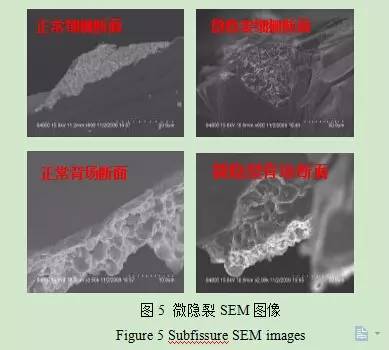 由SEM图片可知:微隐裂正面与背面均存在凹槽缺陷,导致点状烧穿,如图5所示。对于此类由晶体缺陷引起的点状烧穿,如果要降低其产生的可能性,则需要在进料时加一道检测工序,测量每片原料片的少子寿命分布,剔除异常片。但该工序费时费力,可行性有待进一步商榷。
