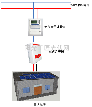 (1)在扶贫项目中,白天家庭中用电设备并不是很多,因此多采用全额上网的模式。根据村子所在的台区的变压器容量,而选采用单台逆变器分别在低压侧并网。
