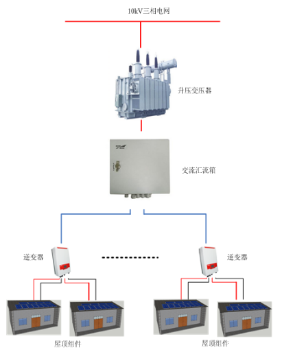 (2)采用将多台逆变器组交流汇流组成大的系统,集中升压并网。