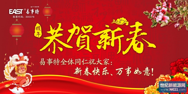 百年品牌坚守国家荣誉,百亿工程永存诚信创新。挥别羊年,羊毫饱沾浓墨重彩酬壮志;展望猴年,猴棒劲舞实业兴邦竞风流。藉此2016年新春佳节来临之际,我谨代表易事特集团董事会及管理层,向长期关心和支持易事特发展的各界朋友、向在易事特各岗位上辛勤付出的各位战友致以最衷心的感谢与祝福,祝大家新年快乐,万事如意,阖家幸福!