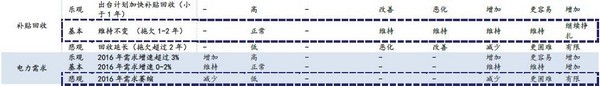 尽管政府不断强调可再生能源在中国能源结构中的重要性,国内的光伏产业发展仍面临诸多不利因素。虽然政府出台了一系列光伏产业支持政策,但限电问题,不断扩大的补贴缺口和传统发电企业的利益博弈导致光伏产业无法获得可持续的经济利润。同时,光伏企业的财务状况也在不断恶化,催生了众筹、绿色债券以及其他创新的但尚不成熟的融资方式。我们认为如果维持现状,中国光伏产业2016年难现实质性改善。图2总结了该产业所面临的主要问题并通过定性假设得出了我们16年的预测数据。