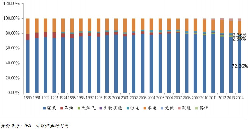 综上所述,基于对电力行业的理解,我们认为,电力的“去库存”与“去产能”可以归结为一个问题,就是电力结构调整,表现在对新增容量的选择性发展和现有存量的结构优化。选择性发展和结构优化就要考虑经济性,技术性和政策性等多方面的因素。下面一章我们将重点分析。